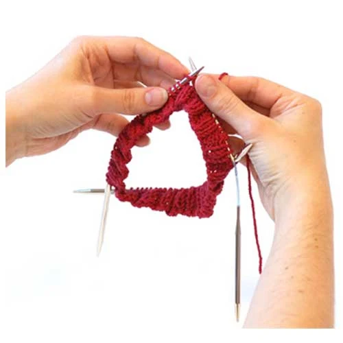 - Easy to use, stitches are simply distributed over two needles, and then knit with the third, resulting in only two needle changes per row.
