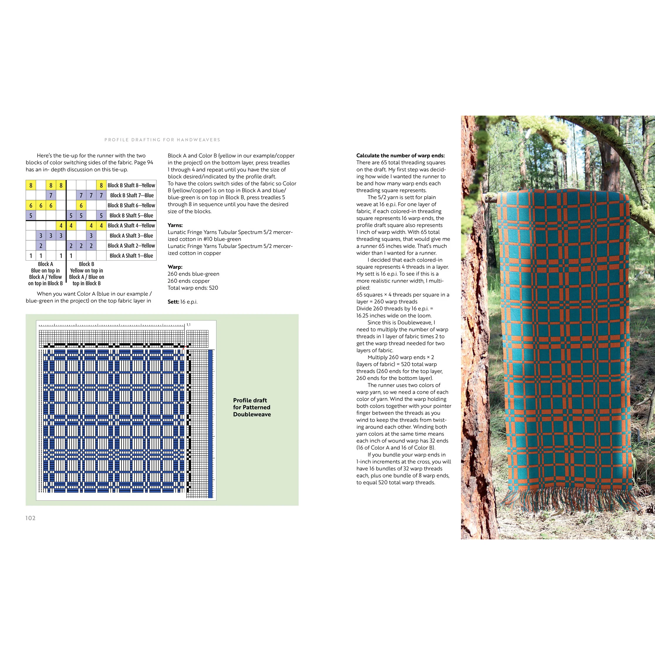 Profile drafts are drafting “shorthand” for weavers, allowing them to create one fabric design and translate it into many weave structures. but many handweavers do not know how to use the drafts. This is the first book dedicated entirely to this key weaving tool.
