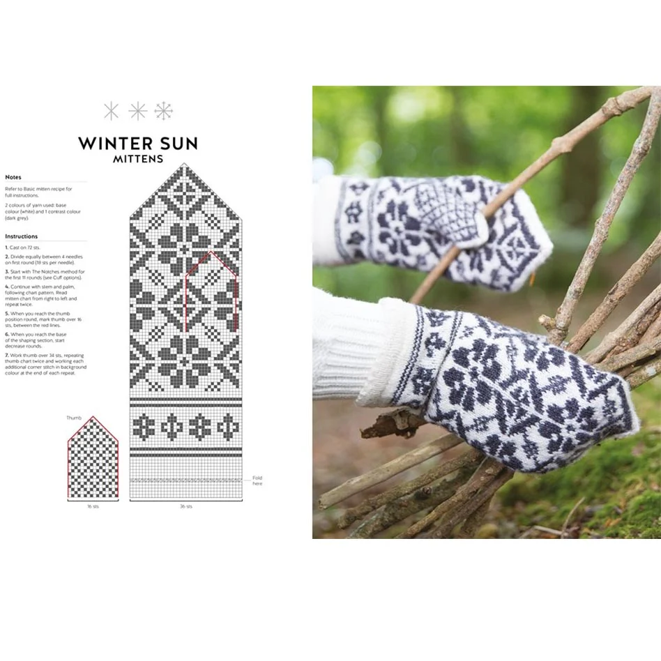 The collection features 100 different patterns with large colour charts for each design so you can easily follow even the most elaborate patterns. There are instructions for the basic mitten, glove and fingerless glove patterns as well as step-by-step instructions and artworks for techniques such as forming the thumb, Latvian braids and other cuff finishing techniques including fringing and notches.